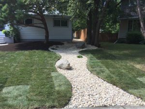 1st in grading and drainage ← Complete yard re-grading with Roman paver walks, dry streambed, sod, etc