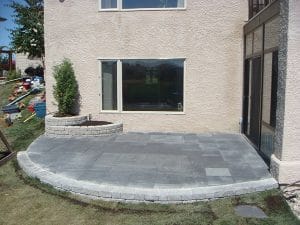 ← Raised patio with Dynasty Slate patio blocks in charcoal